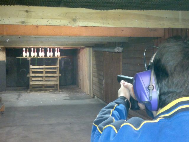 Das Kegelschiessen besteht aus 3 Teilbewerben wobei die Zeiten addiert werden: - 10 Kegel abräumen - 5 Stahlkegel auf 10m - 5 Stahlkegel auf 15m